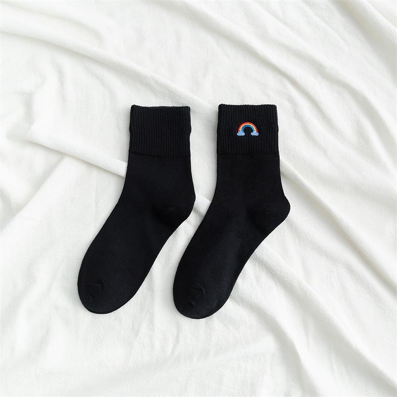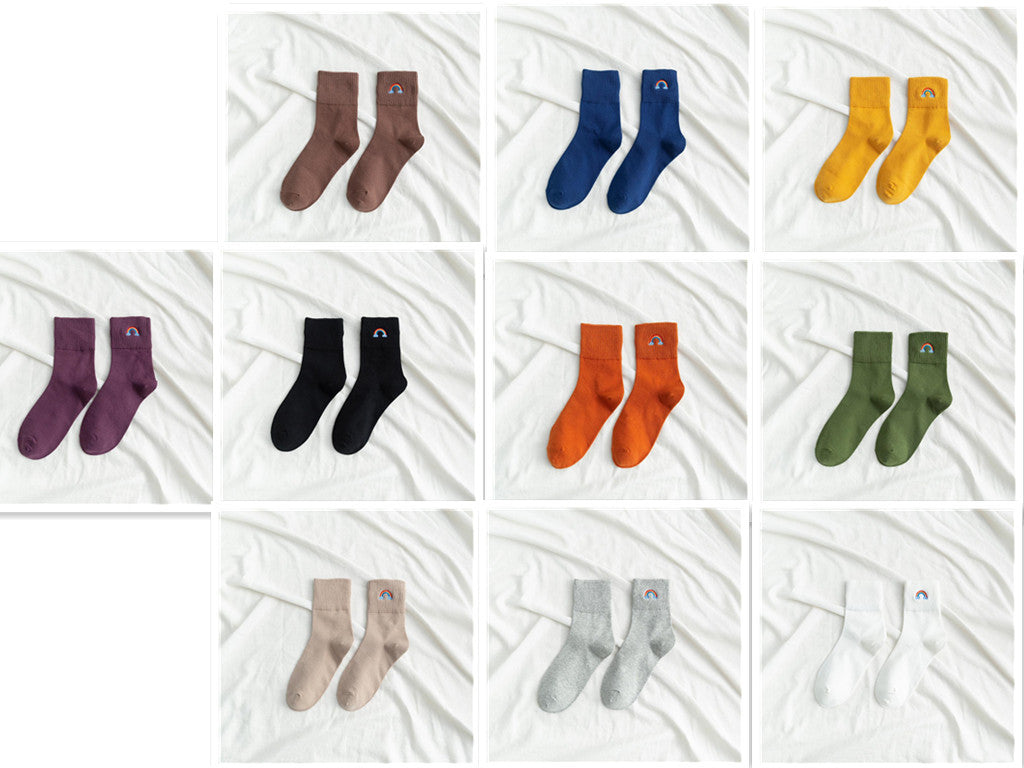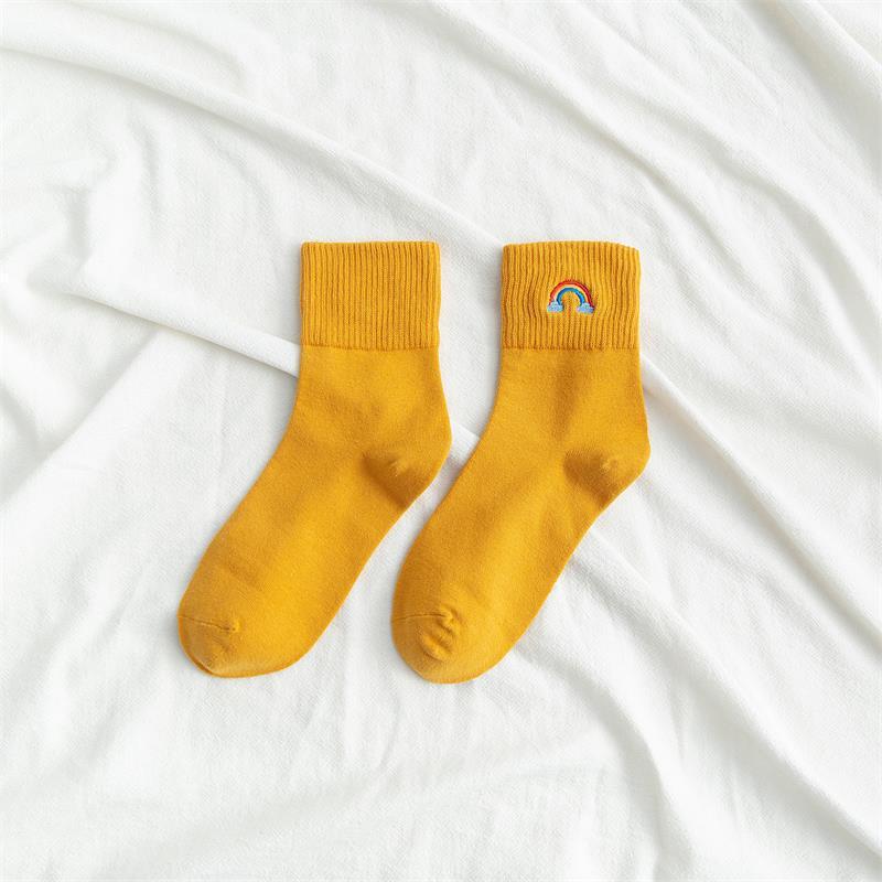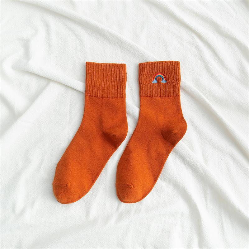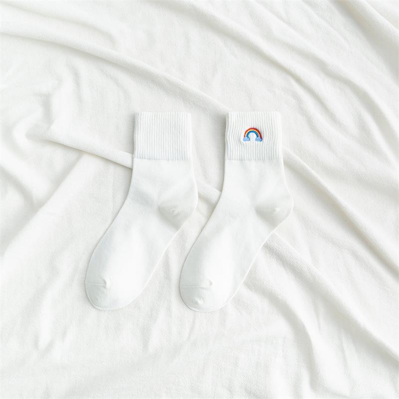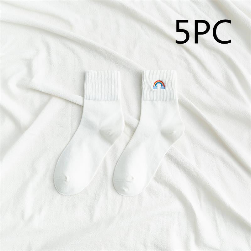 [ セット商品と単品商品] レディース レインボー刺繍 ソックス ファッション カジュアルスタイル(10足/5足/1足)