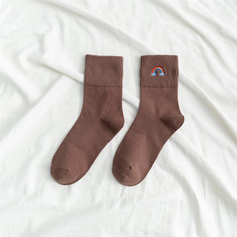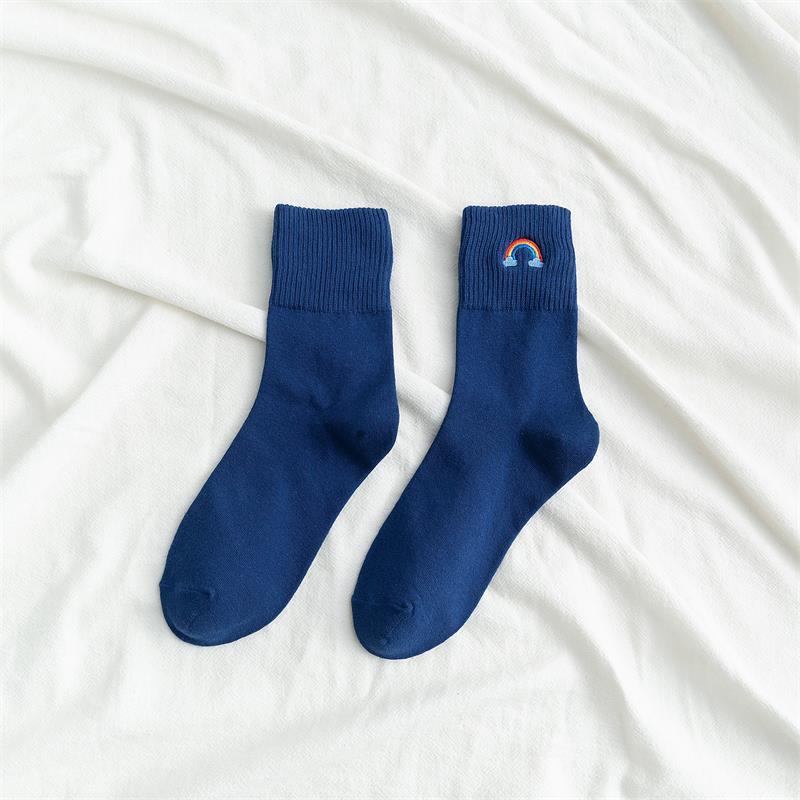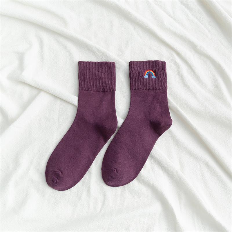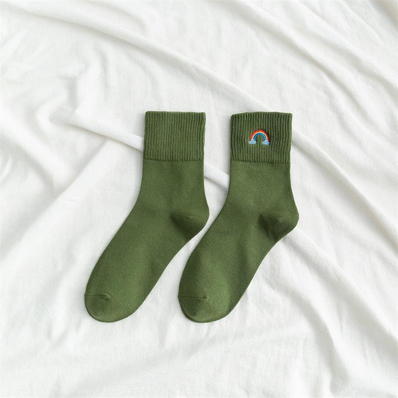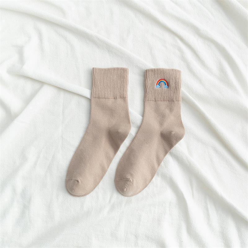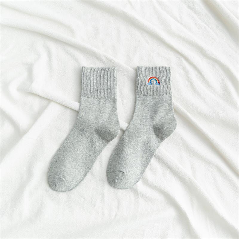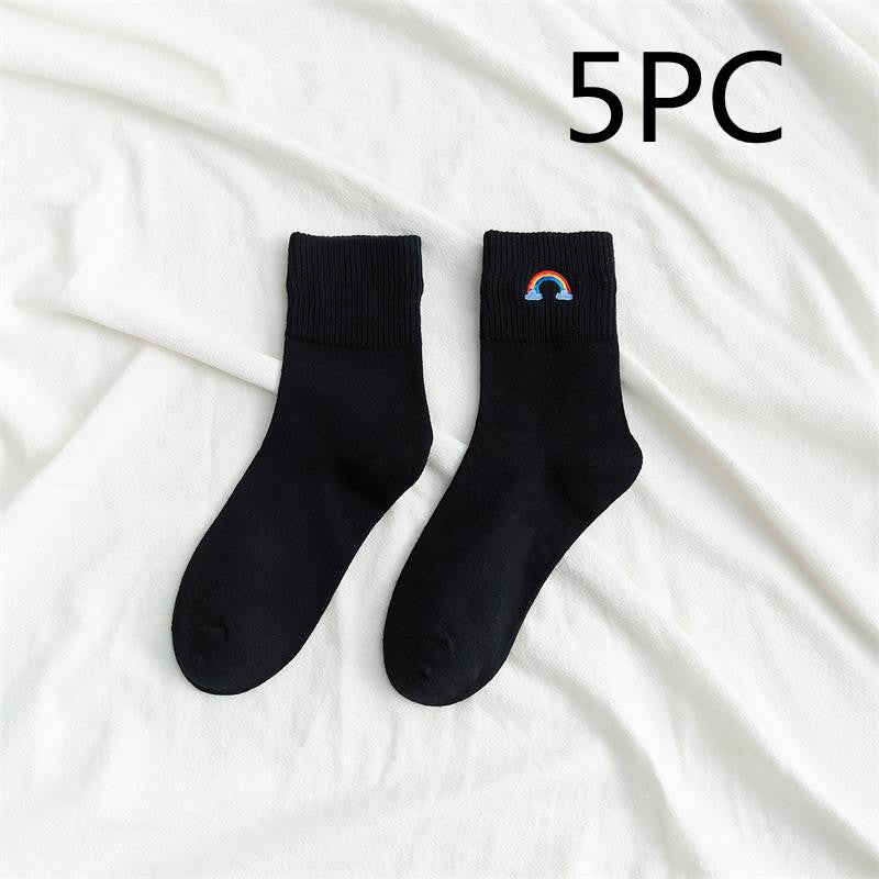[ セット商品と単品商品] レディース レインボー刺繍 ソックス ファッション カジュアルスタイル(10足/5足/1足)