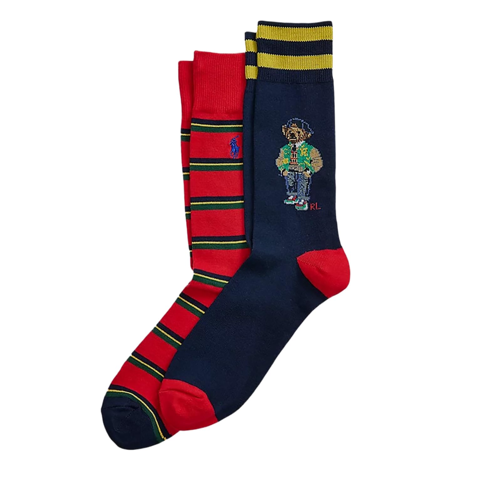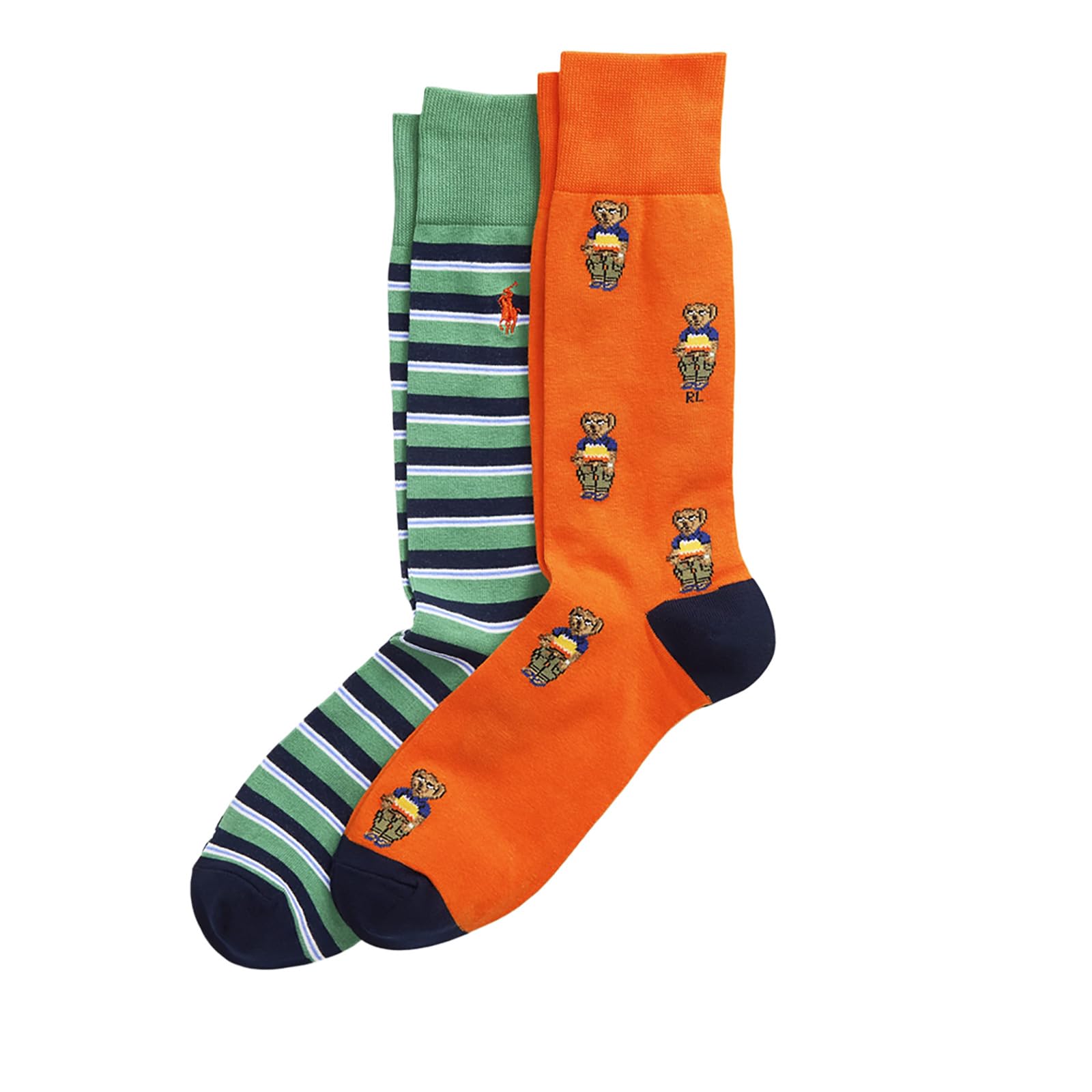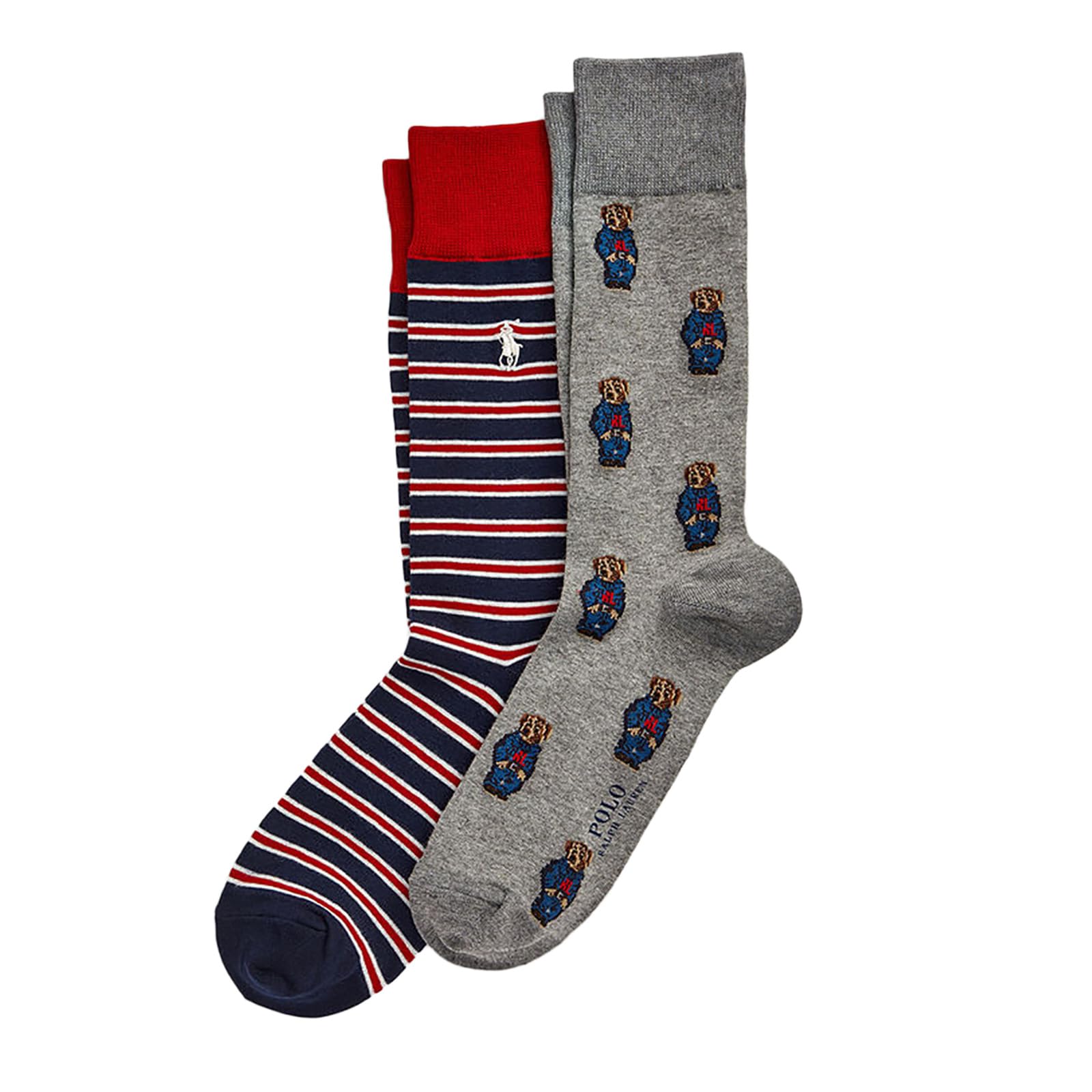 POLO Ralph Lauren(ポロ・ラルフローレン)より、Poloベア総柄デザインと無地、ボーダー柄の2足セットのクルーソックスが入荷しました。