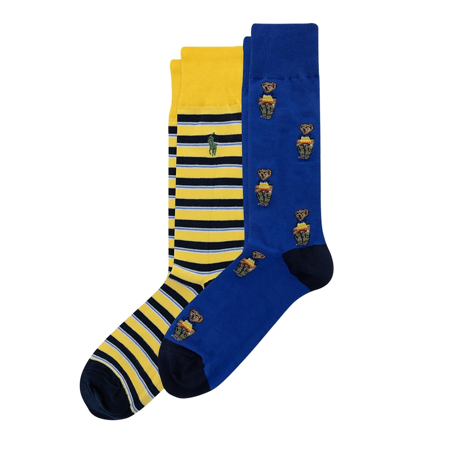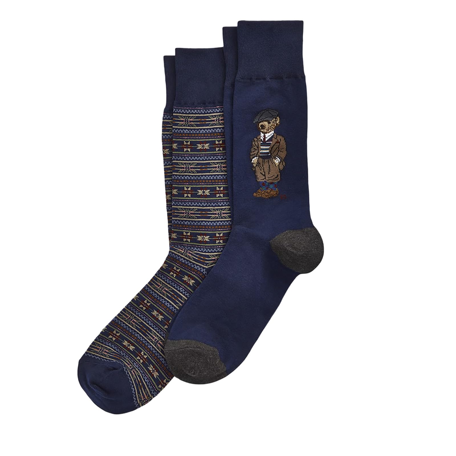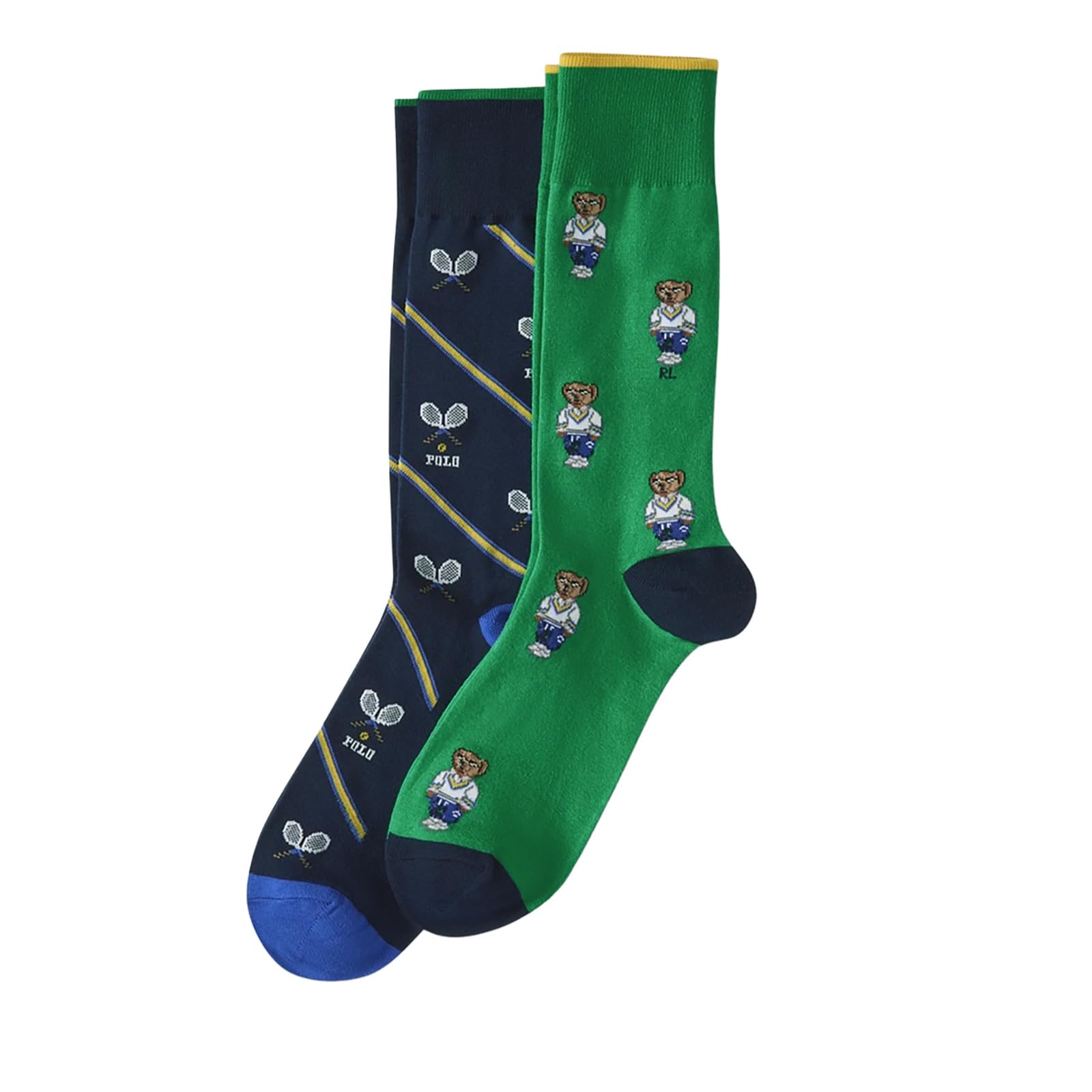 POLO Ralph Lauren(ポロ・ラルフローレン)より、Poloベア総柄デザインと無地、ボーダー柄の2足セットのクルーソックスが入荷しました。